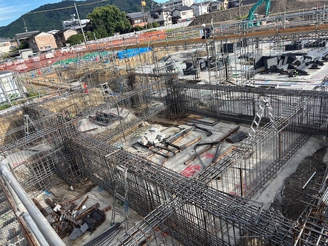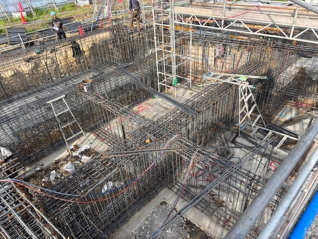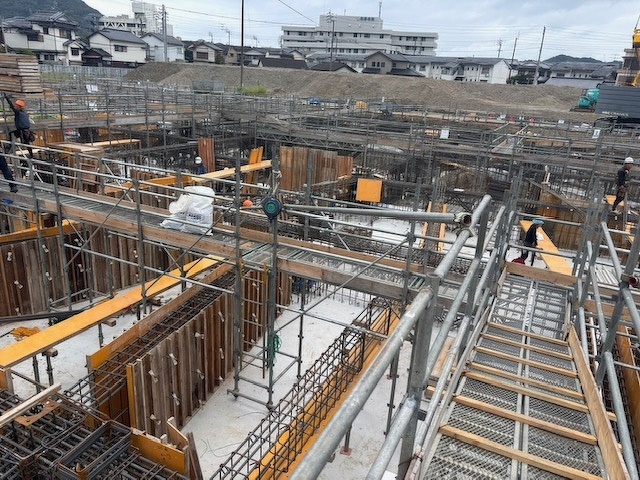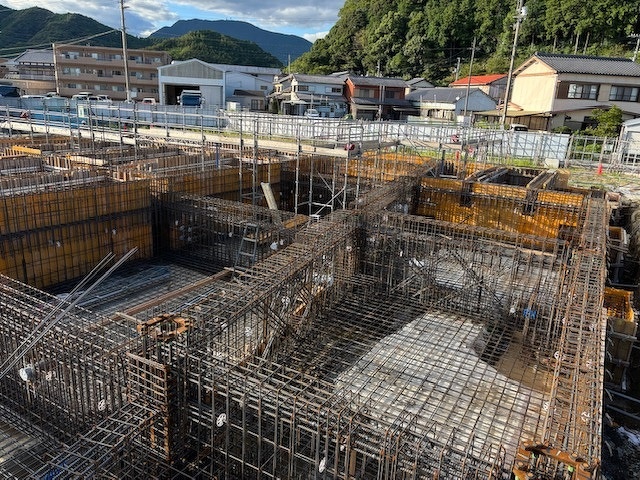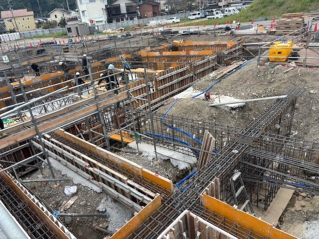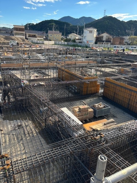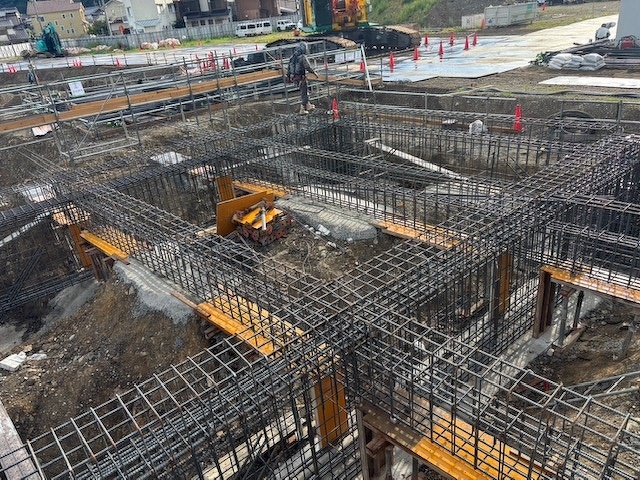 その中の1件の施工状況です。変わった形の基礎工事が進行中です。
